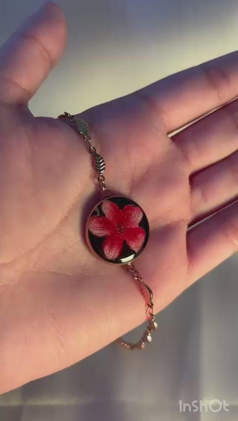 The timeless blossom resin bracelet brings a touch of nature's charm to your wrist. The beautiful pink flower and sleek silver-plated band bring an extra elegance, making it ideal for any occasion. This lightweight, handmade resin bracelet is a perfect blend of comfort and elegance. Whether you're at a brunch or a wedding, this bracelet fits every occasion. It's perfect for gifting or wearing yourself, adding a timeless floral charm to your jewelry.